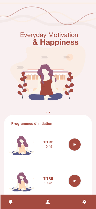 L’application Médiness est une application de méditation à l’image de Petit Bambou ou encore Namatata. Elle permet à son utilisateur de participer à un programme, suivre son évolution au quotidien, ou encore de pouvoir écouter sa séance en toute facilité. Le design se devait d’être minimaliste, afin de laisser respirer l’utilisateur.